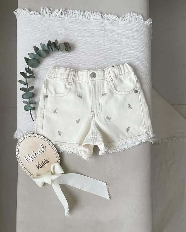 شلوارک کتان اورجینال خوشگل ترین و ادایی ترین شلوارک بااون گلدوزی های برجسته دلبررررش بااین کیفیت و بینظیرههه @nahal_kidds @nahal_kidds