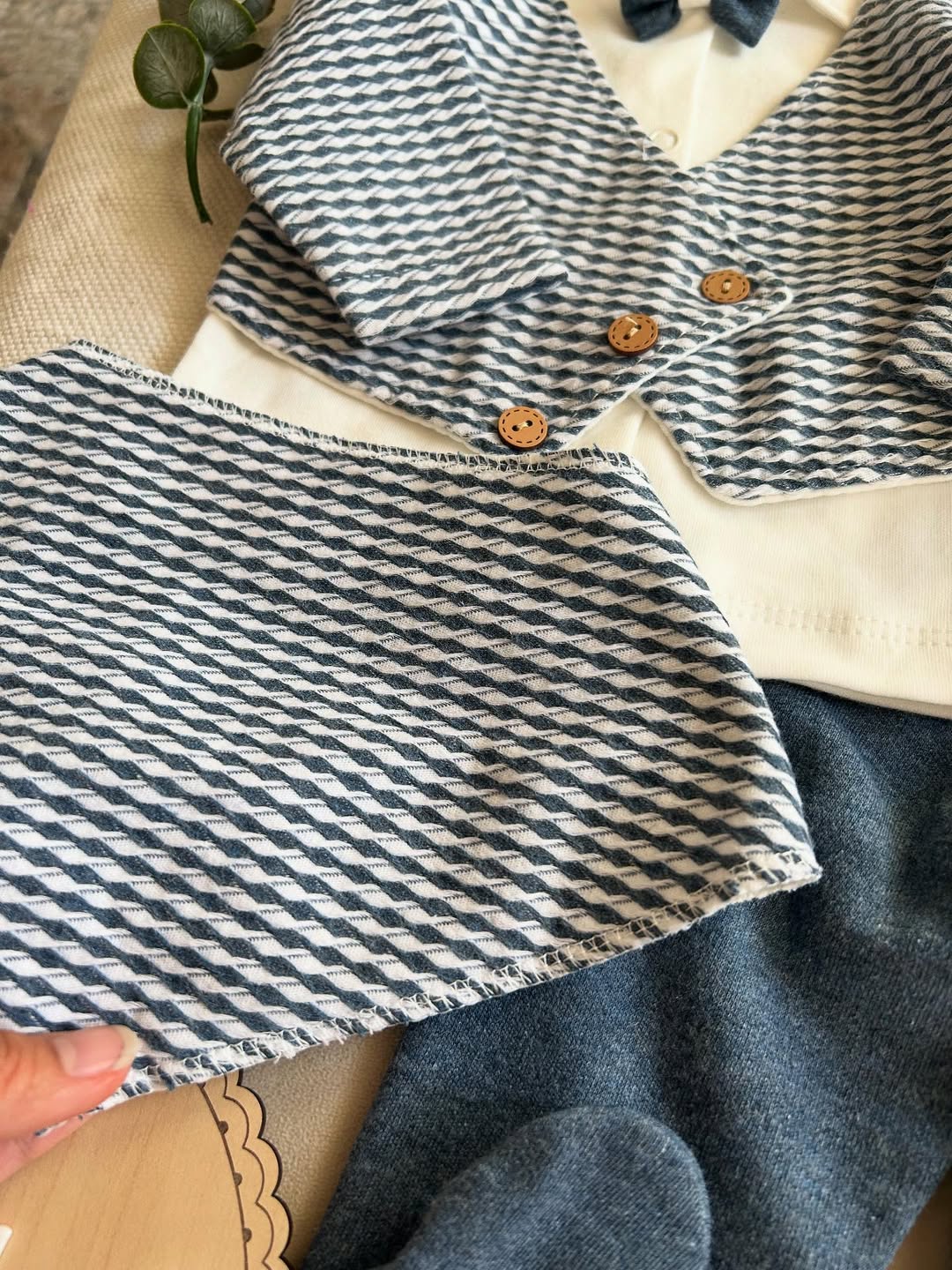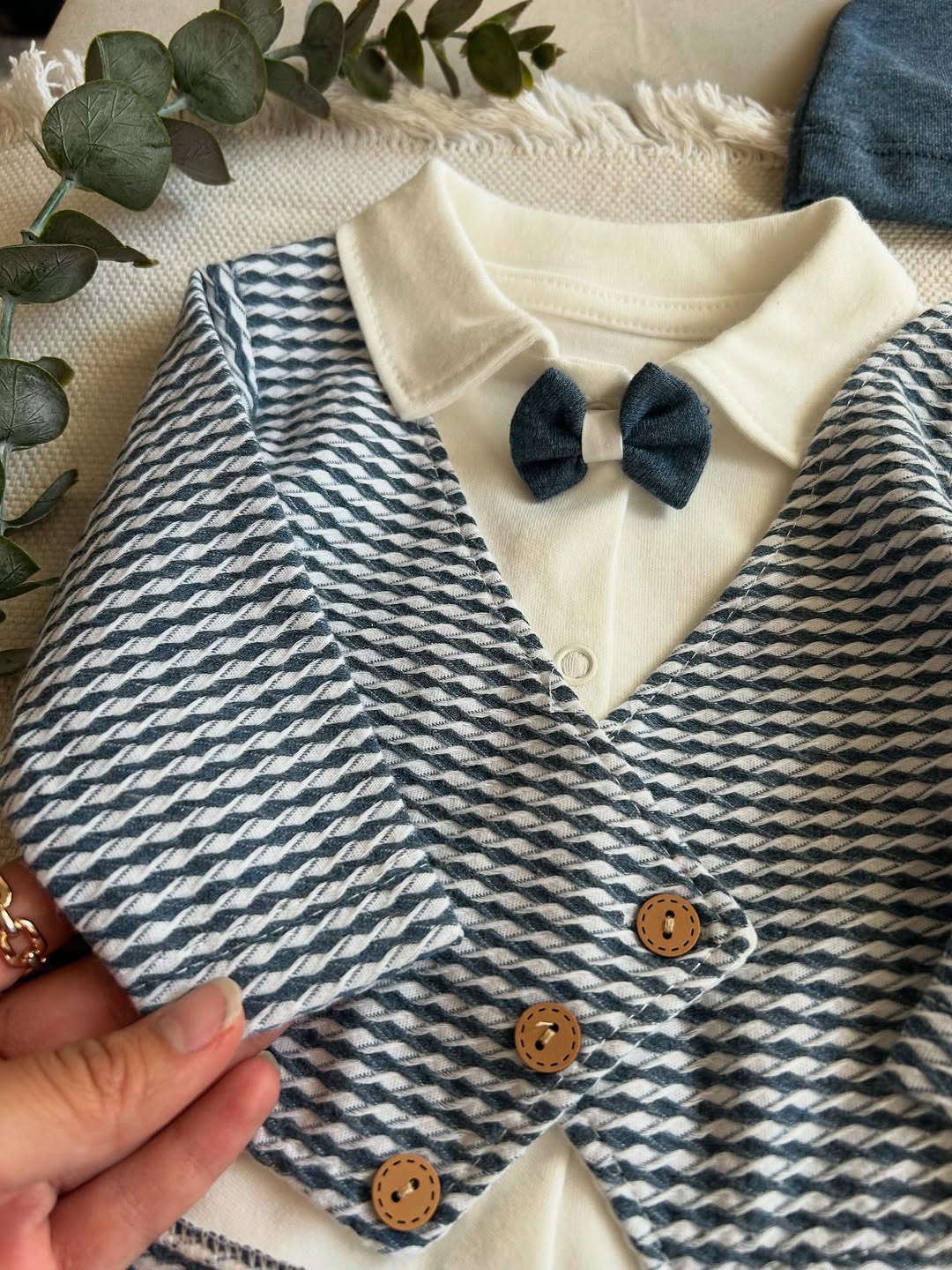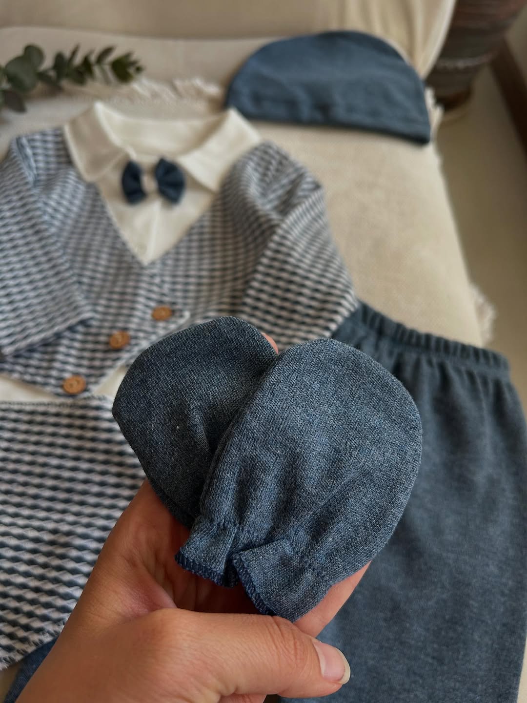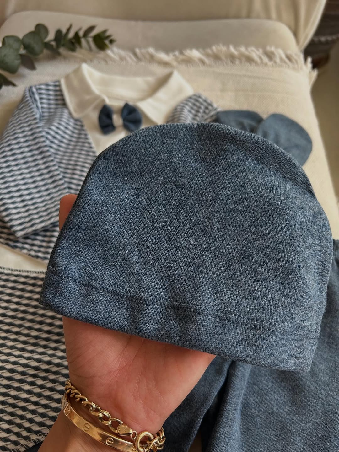 جذاب ترین ست بیمارستانی پسرانه یه ست لوکس و بسیار با کیفیت ترک از برند benelina @nahal_kidds @nahal_kidds تک سایز مناسب۰تاسه ماه پنج تیکه شامل بلوز استین دار کلاه دستکش شلوار جورابدار پیش بند