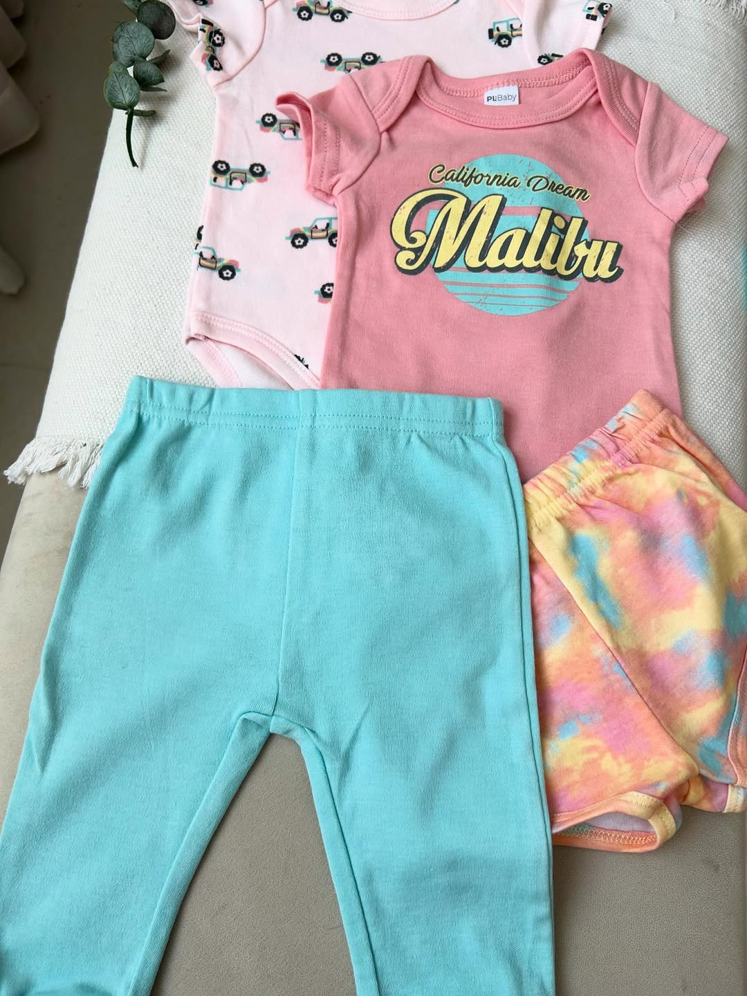 ست چهار تیکه وارداتی خوشرنگوووو خاص چهار تیکه شامل دو عدد بادی استین کوتاه یک شلوارک و یک شلوار وارداتی از برندPL @nahal_kidds @nahal_kidds