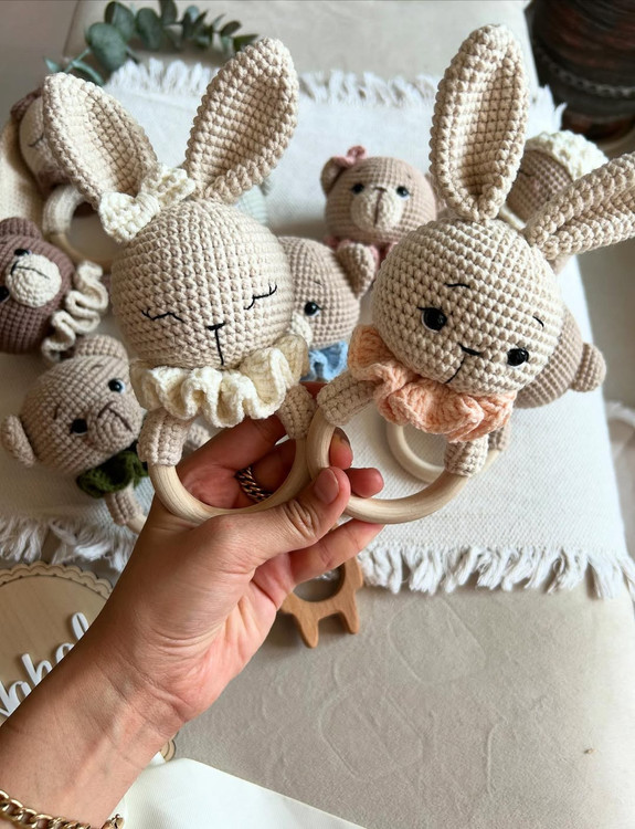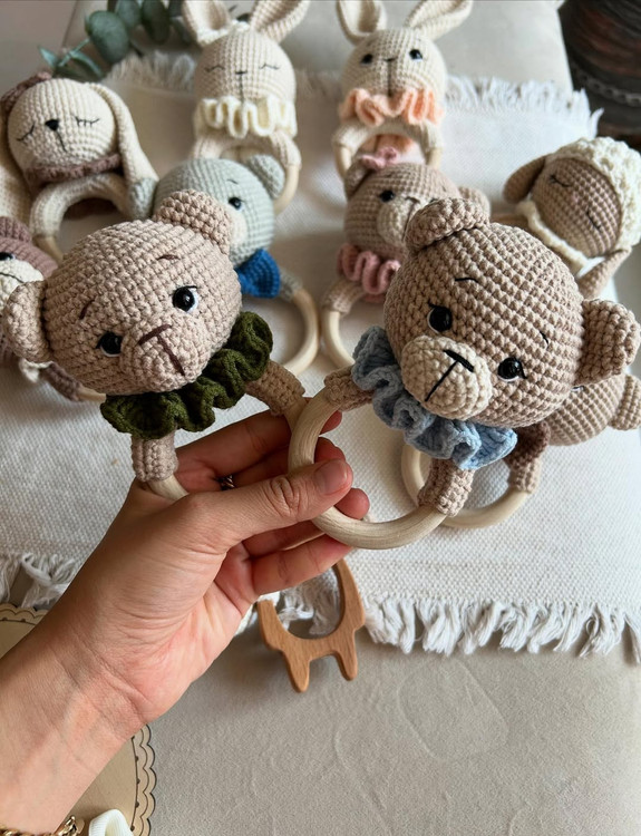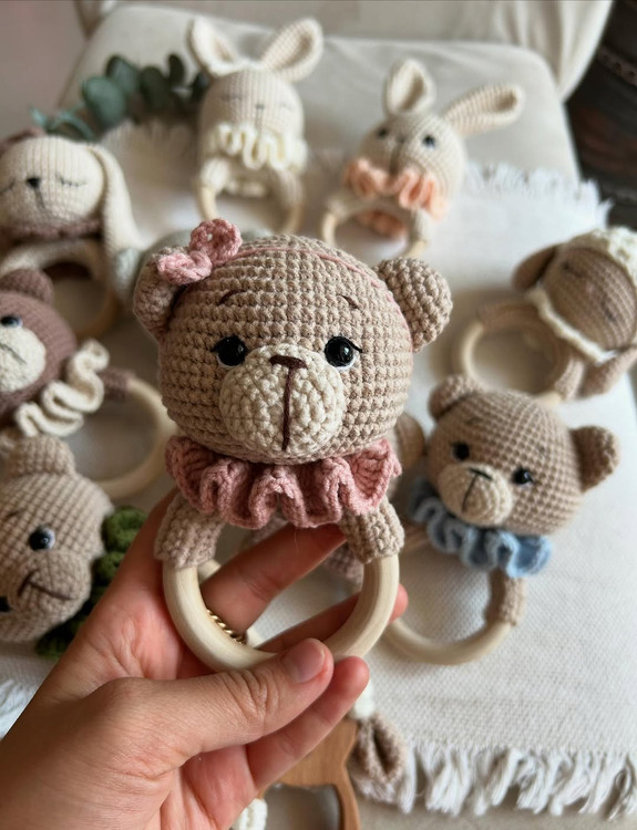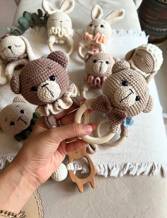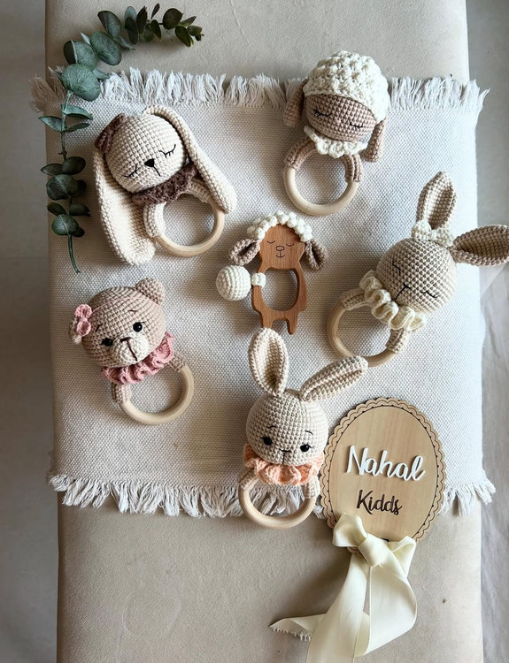 این دفعه با کلیییی تنوع مگه میشه سیسمونی بخری و از این خوشگلا نداشته باشی @nahal_kidds @nahal_kidds جغجغه های دست بافت با نخ ترک قابل شست و شو بدون پرزدهی نخ بامبو بدون پوست پوست شدن بها