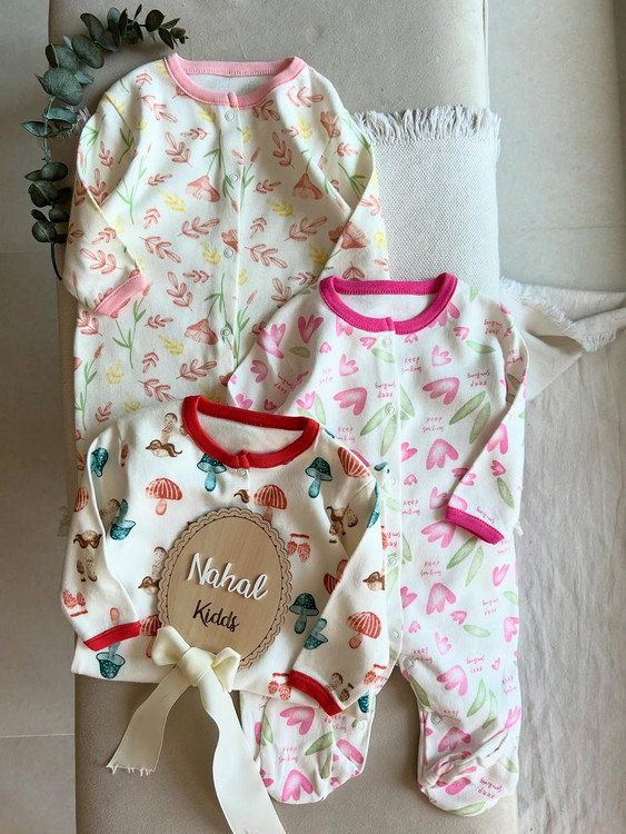 چقدرررر اخه خوشرنگووو لعابن سرهمی های جورابدار ترک مناسب۰ه @nahal_kidds@nahal_kiddsds نخ پنبه صددرصد فاق تمام دکمه میخوره سایز ۶۲ (مناسب صفر تا سه ماه ) قد کل بدون جوراب ۴۷ سرشانه تا فاق ۳۶ عرض۲۶ سایز ۶۸ (مناسب سه تا شش ماه ) قد کل بدون جوراب ۴۹ سرشانه تا فاق ۳۷ عرض۲۷ سایز ۷۴(مناسب شش تا نه ماه ) قد کل بدون جوراب ۵۲ سرشانه تا فاق ۳۹ عرض۲۸ بها احترام۳۷۵ت