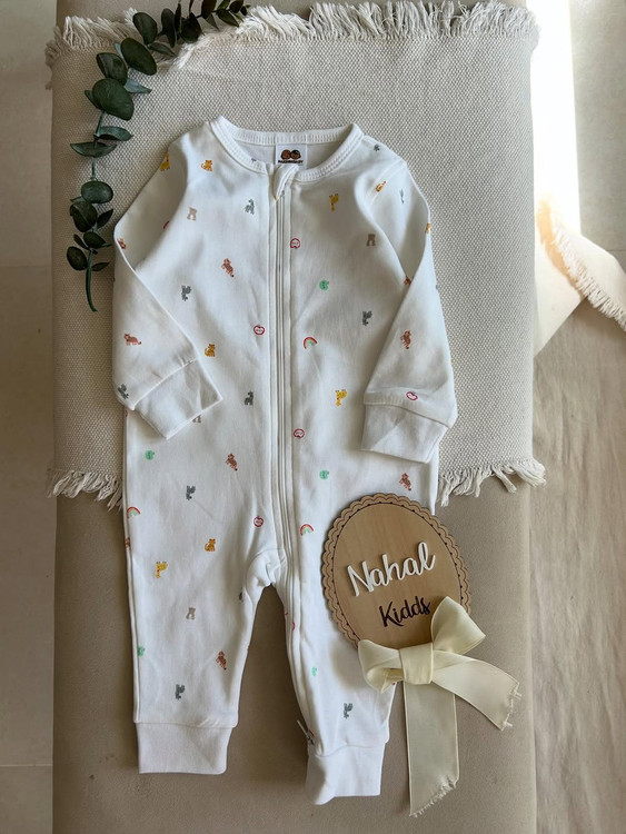 رنگ خاکستری کمرنگ با طرح زرافه۱ماه تا ۳سال