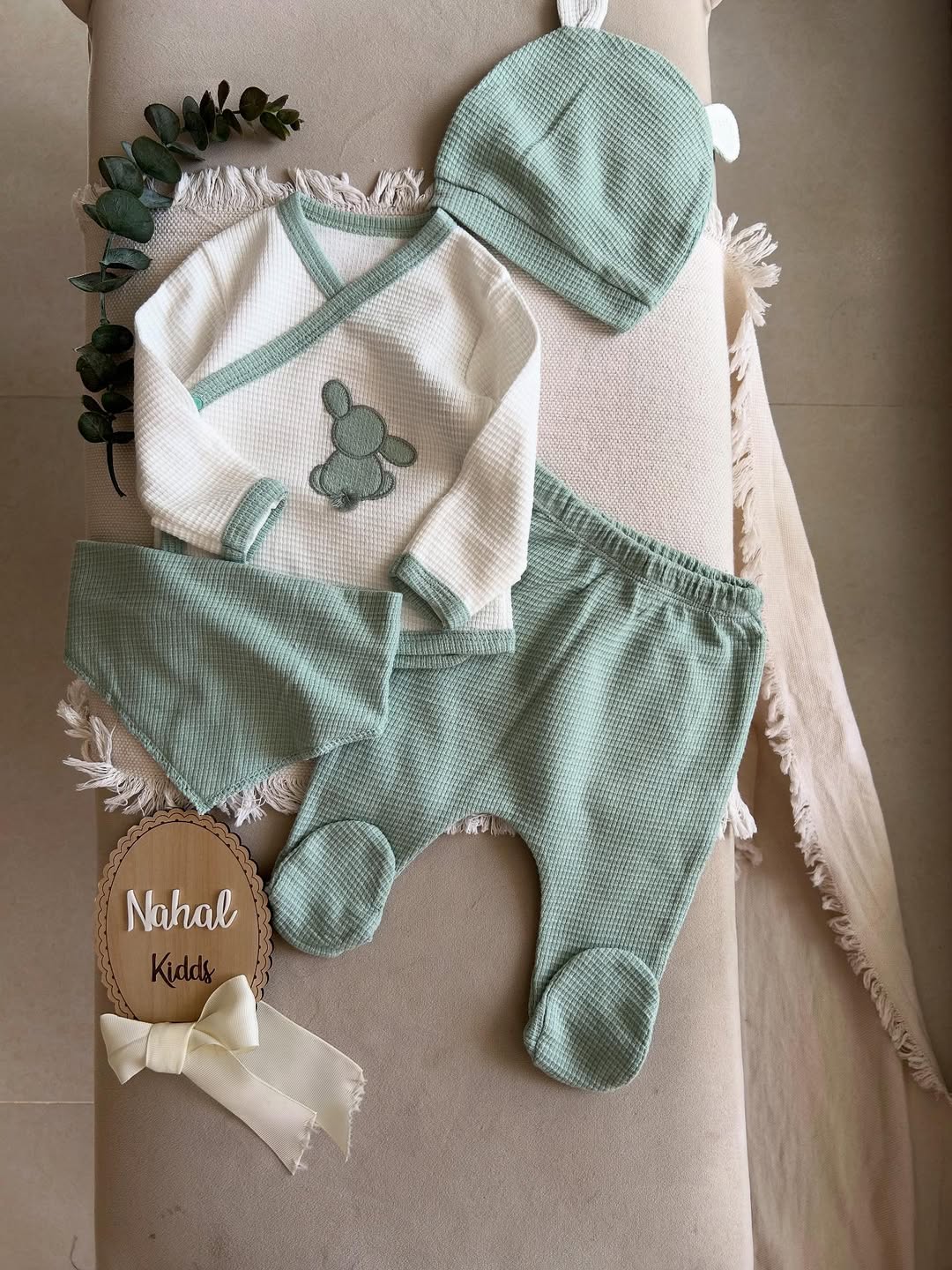 ست ترک چهارتیکه مناسب برای دوقلو های دختر پسر ست به صورت جدا گانه(دخترانه/پسرانه)قابل است نخ پنبه بیسکوییتی و بسیار با کیفیت @nahal_kidds تک سایز ۰تاسه ماه بها۷۵۰ت