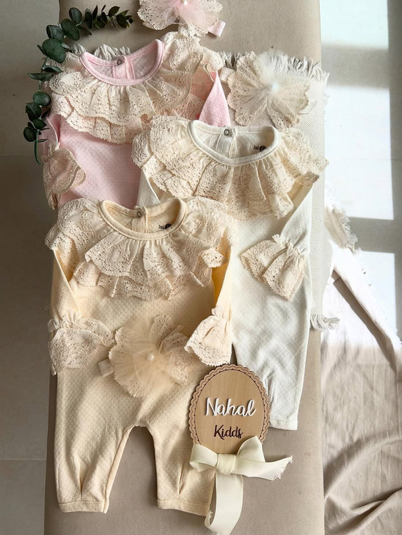مناسب۰تا۶ماه تو سه رنگ جذاب صورتی و سفید و کرم روشن
