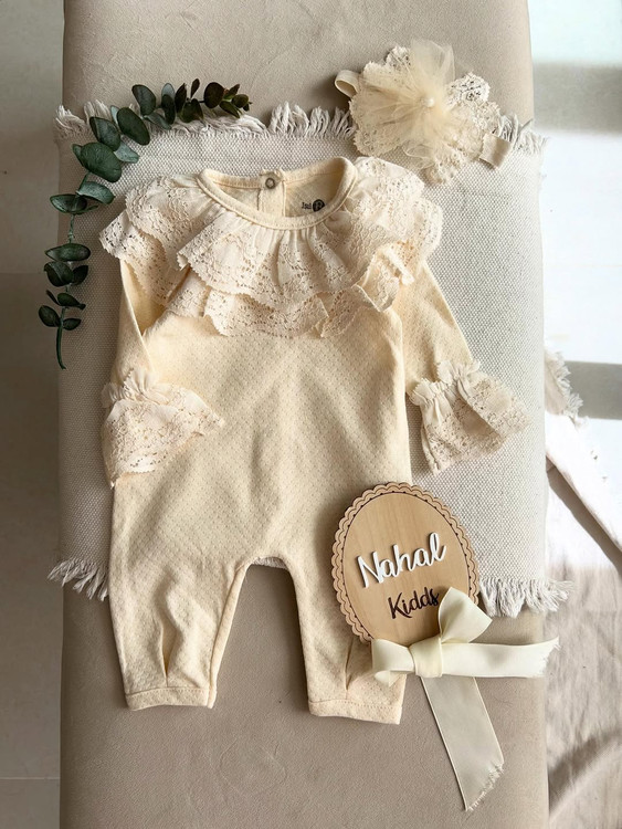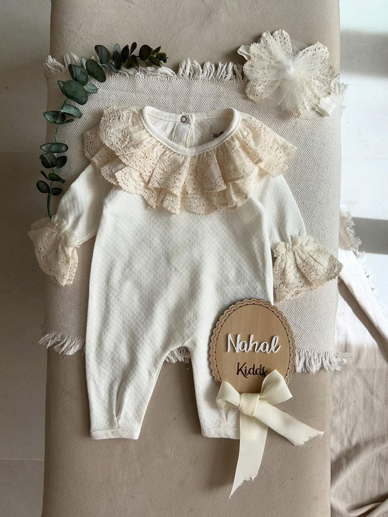 سایز۰تا۳ماه قد کل ۴۳ سرشانه تا فاق ۳۲ عرض۲۲