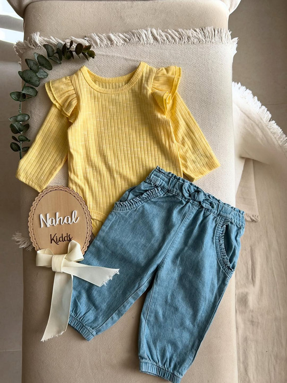 کد جست و جو در سایت۱۰۲۶ ست بادی و شلوار جین وارداتی یک کاردختروپه دلبر و خوشگل جین کاغذی هست