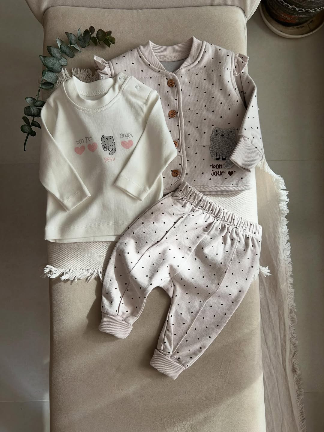 ست سه تیکه ترک دخترانه شامل بلوز شلوار و سیوشرت